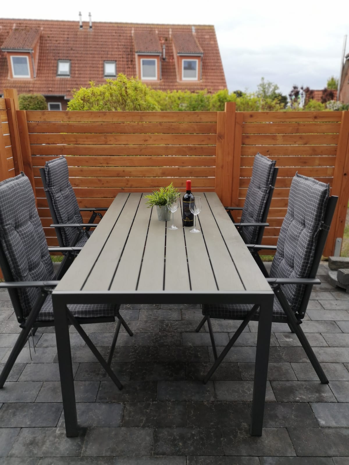 - Große Terrasse mit Gartenmöbeln und Liegewiese